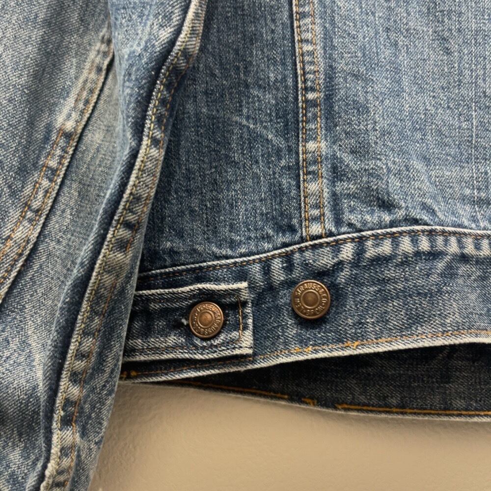 目立った汚れやダメージはありませんが、古着特有の色褪せや使用感がありつつ、インディゴブルーも割と残った状態